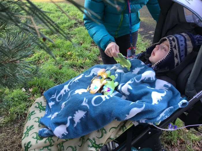 Our work on the RSPB Wild Challenge continued with our special sensory Millennium Woods bird-watch. We had been for a walk in the woods and we could hear lots of birds , but they was far too high up in the trees for us to see. Therefore, we used photographs and toy birds hidden in the trees that the children could find and touch. We also recorded a variety of bird songs on Big Macs and Big Point devices so that children could listen to the corresponding sounds.