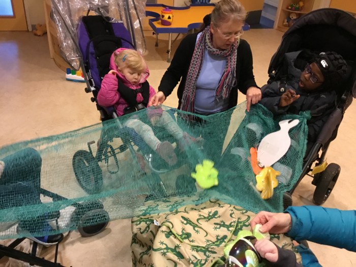 There were some very fishy activities too. Inspired by news from home that one of our children had received some fish as a Christmas present we set up a fish treasure hunt in the woods followed by fish related stories and songs in the nursery.
